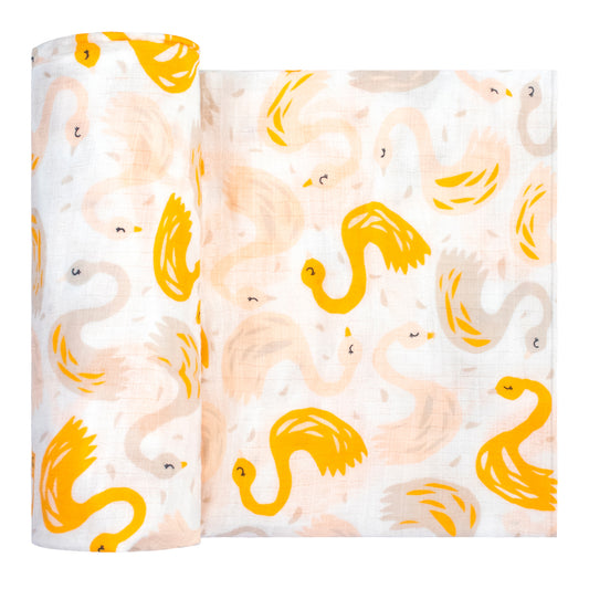 Adam Stork® Muslin Swaddle Blanket for Girls Yellow Mango Swan