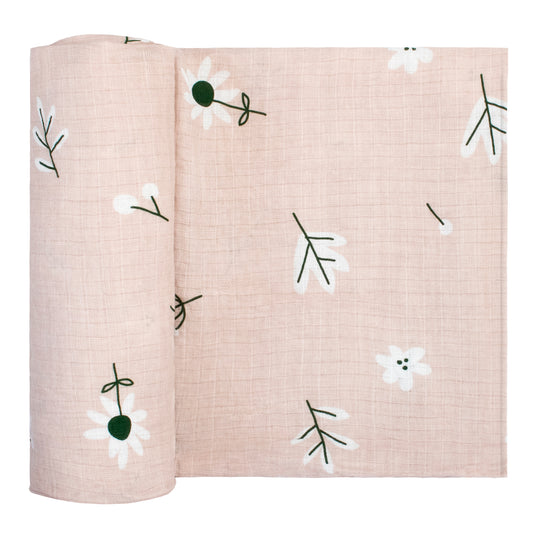 Adam Stork® Muslin Swaddle Blanket for Baby Girl Floral Pink Wildflower
