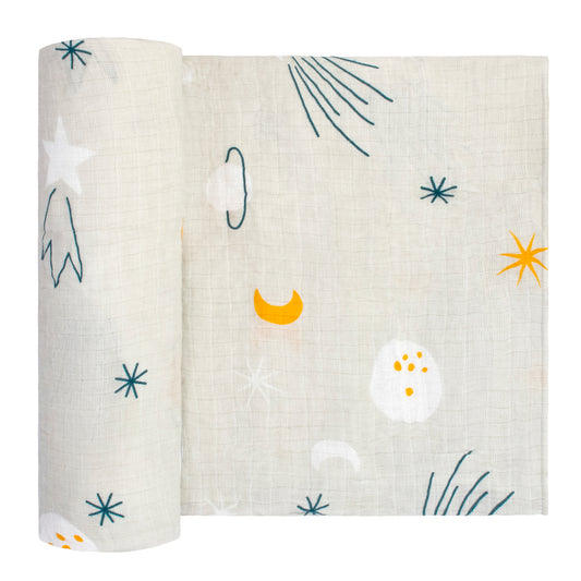 Adam Stork® Muslin Swaddle Blanket 100% Cotton for Baby Girl & Boy Unisex Gender Neutral Planetary